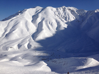 Tateyama (2300m and up) This huge Alpine area is a playground for hundreds of people in late November, and through the spring. A little hike, though, and suddenly it feels like the mountains are all yours. Plus a real onsen mountain lodge experience at the end of the day, and always a party around the fireplace. A favorite of the whole Dancing Snow team! |